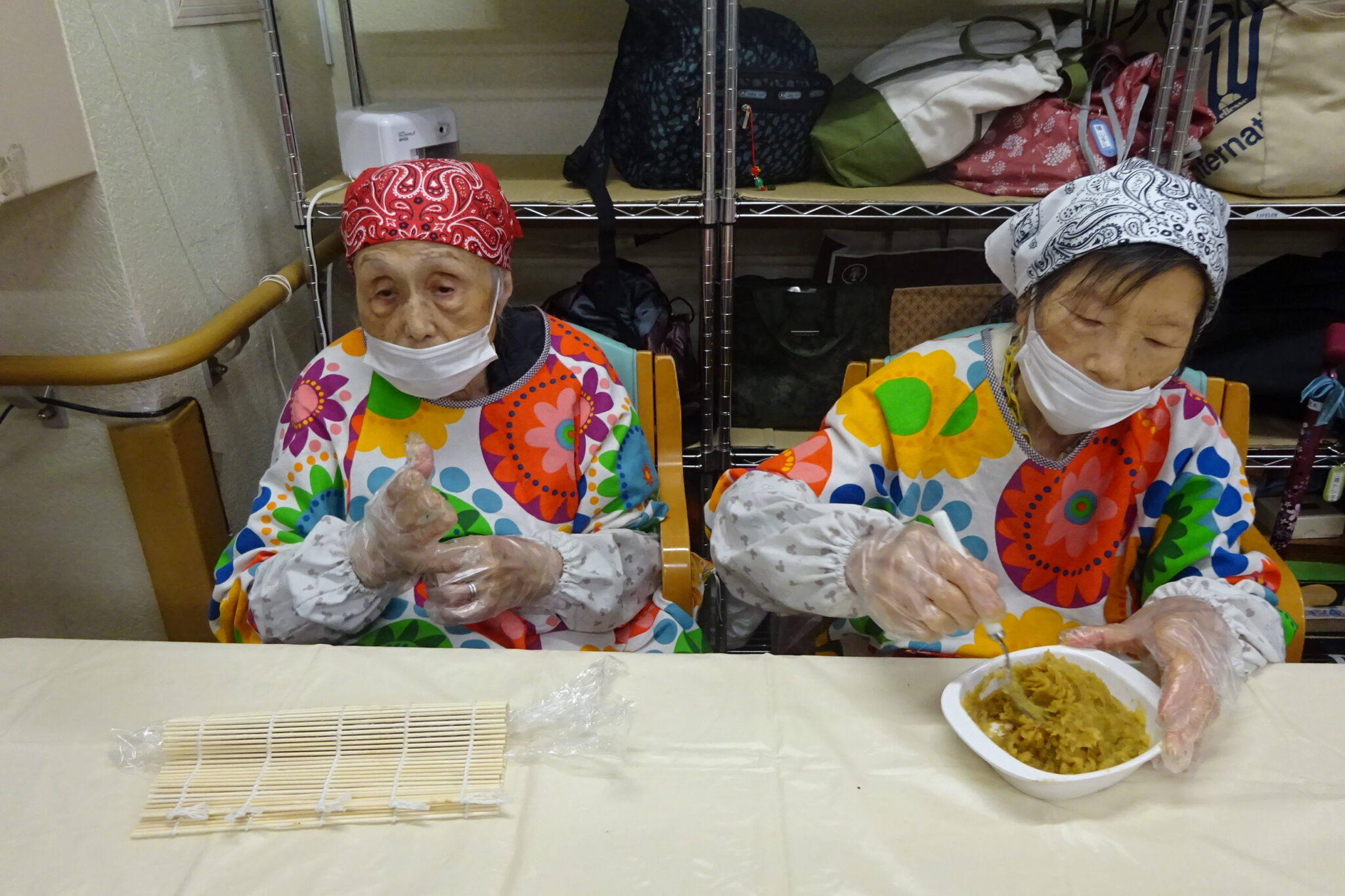 【お菓子レク】蒸しようかん つくりました‼ 公開済み: 2025年9月23日更新: 2025年9月23日作成者: 万葉のさと大口カテゴリー: 大口 秋分の日 本日は蒸しようかんつくりました。焼き芋を添えて素晴らしいお菓子が誕生 しました。この時期に食べると癒されますね。蒸しようかん そろそろ出来上がりです!!添え物の焼き芋をつぶしているところです。できました!! お茶は川根茶にしました。蒸しようかんに、ピッタリです。 もっちり感あり、とっても甘味が落ち着いていて美味しかったです。 関連記事 2022年ありがとうございました。 コロナはもちろん大変な1年間でしたぁ!! ご利用者様 ご家族様 スタッフの皆様関係者様 すべてにおいて、本当にお疲れ様でした!!来年は良い年になります様に。最終日は全体の体操で整えてから、いざ出陣…続きを読む 公開済み: 2022年12月30日更新: 2022年12月30日作成者: 万葉のさと大口カテゴリー: 大口 お菓子レク パート4 暑い 蒸し暑いと大変な日々ですが、皆様、無理されずあせらずがんばりましょう。男性のご利用者様もお菓子レクがんばってますよ。やっぱりがんばっている姿を見ると励まされますね。 公開済み: 2025年6月26日更新: 2025年6月26日作成者: 万葉のさと大口カテゴリー: 大口 梅雨だから、ツーゲームしました。 この時期は蒸し暑く、高湿度でなんか、気持ちがスッキリしませんね。ここまできましたら2種類のゲームで盛り上げていきました。夢中になってがんばると、なぜか他の事忘れて、スッキリしますよね。今回は「キャッチ ザ キ…続きを読む 公開済み: 2024年6月15日更新: 2024年6月15日作成者: 万葉のさと大口カテゴリー: 大口