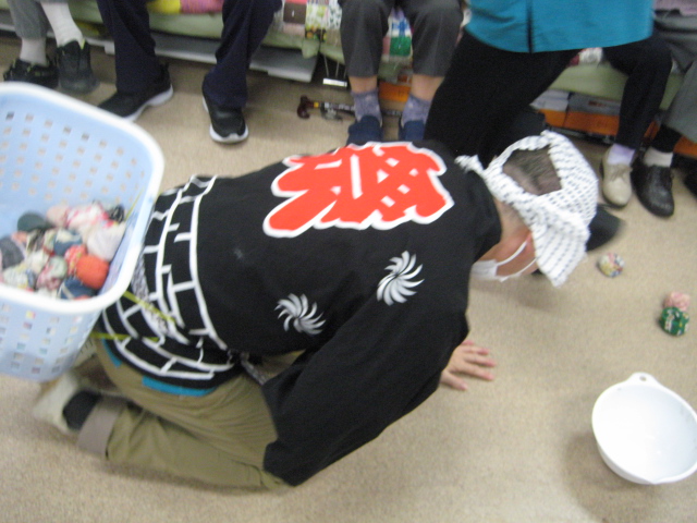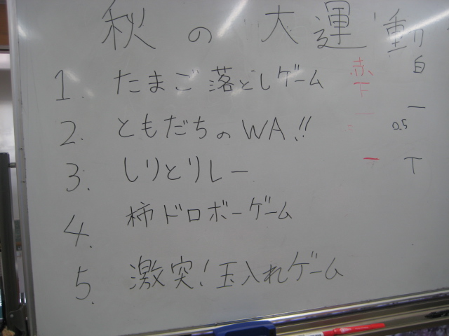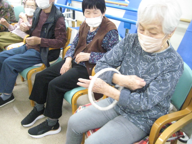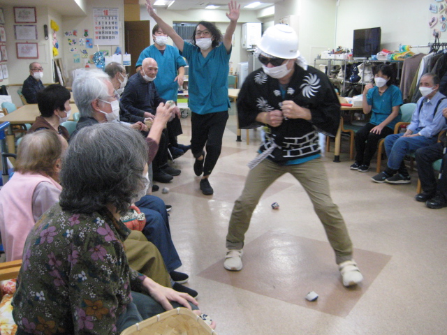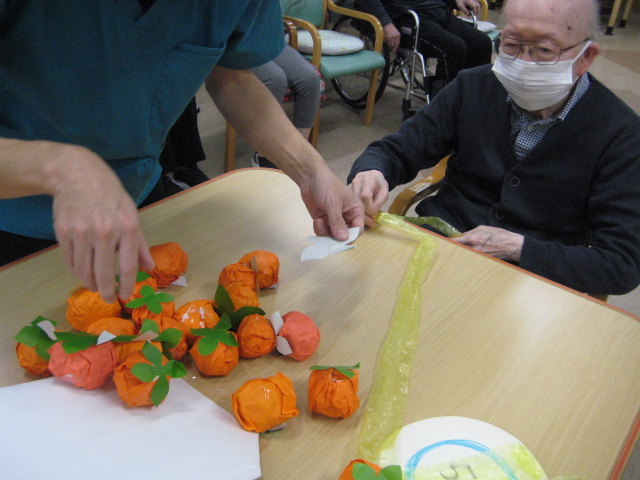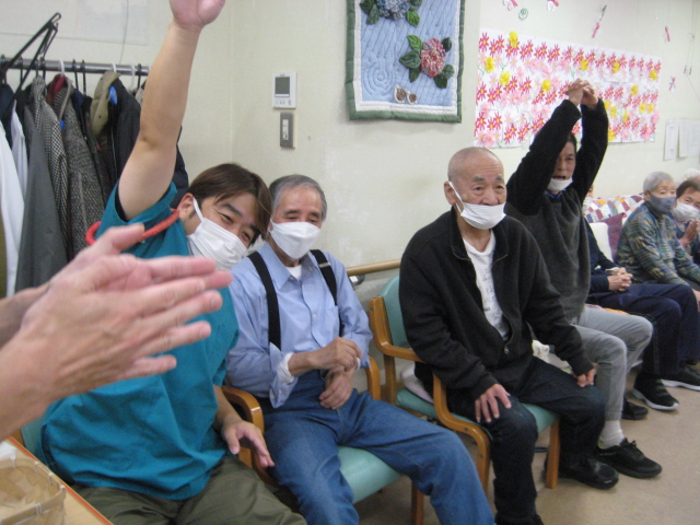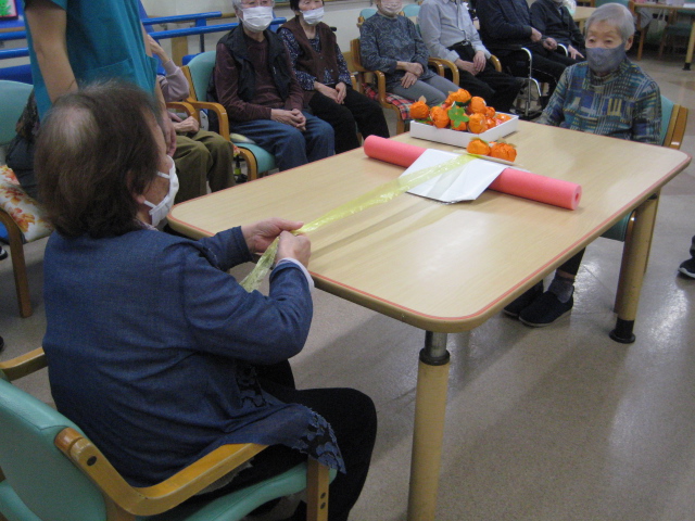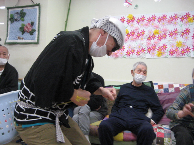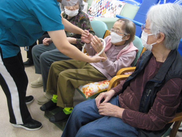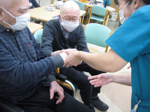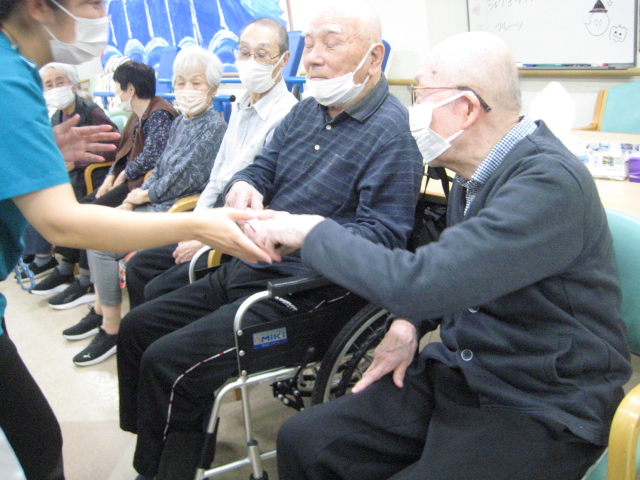 ★☆秋の大運動会!!★☆ 公開済み: 2025年10月28日更新: 2025年10月28日作成者: 万葉のさと大口カテゴリー: 大口 秋の大運動会!! 始まりました!!素晴らしい、5つのゲームがあります。まずは向かって左側が赤組 右側が白組に分かれて 1番目の「たまご落としゲーム」からスタートこれは簡単です。小さいお手玉をコップに順番に入れて回していき、最後の方へ バトンタッチしてゴールイン!!!コンパクトリレーですね。これは できない所はスタッフが優しくサポート。◇◆最後はかごの中にゴールイン◆◇ おめでとう、このゲームは白組勝ちました!!!■2番目のゲームは「ともだちのWA!!」大きいリングを両手でうまくつないで隣の方へバトンタッチ 回してますね。これは、なかなか難しいですよ。頑張って!!やりましたぁ!!こちらは赤組の勝ちでしたぁ やっぱり勝つと嬉しいものですね。次は「しりとりリレー」ゲームいきましょう!! 写真だと、何かと伝わりにくいのですが、しりとりでバトンを隣の方へつなげるところ何ですよ。言わないとわからないですよね...。見ての通リ、白組の連携がすばらしく...これで優勝ライン赤組も頑張ってますよ~お見事!!最後の追い上げで紅組の勝利でしたぁ。白組がんばれ!!さぁ~大番です。4番目のゲームは「柿ドロボーゲーム」です。これは見ての通リ!!障害物リレーみたいなものです。紐でひっぱって皿の上に柿を落とさない様に運び何個とれたか競うゲームですよ。これは夢中になりますね!!納得赤組の男性陣もなかなかの腕前そろってさすがです。頑張って~これは白組勝ちました!!おめでとうございます。やっぱり負けているチーム応援したくなりますね。おーーーーッと、これは何ですか!!最後のゲーム「激突!玉入れゲーム」登場!!男性スタッフの背中の籠の中に何個、お手玉が入るか競うゲームです。あっちこっち回ったり、どこへ行くかわかりません。みな様 がんばってください!!逃げ足早いから気をつけて!!最後の追い込みです。盛り上がってきましたよ...これは!!おーーーーーっと体力消耗か 頑張れ!!ファイト一発!!ゲーム終了!!なんと大逆転 白組優勝!!わかりますか。籠の中のお手玉の数が凄い量なんです。本当に皆様 お疲れ様でした。これはもう、ゲームに参加した全ての方が優勝者です。 関連記事 コロナに負けないマスクつくりました!! ・・・ご自身でマスク作りました。次回はもう少し良く仕上げるそうですよ。滅菌ガーゼで使用しました。ゴムがないからTシャツの生地使用です。頑張って紐を結んでますよ。 こんな感じで事前にゴム代わりのTシャツの紐も作ってるんです…続きを読む 公開済み: 2020年4月20日更新: 2020年4月20日作成者: 万葉のさと大口カテゴリー: 大口 富士山のアート完成しました!! 富士山のアート完成しました!! ご利用者様から「 温泉に来た気分ですよ。 」「パァーーッと明るくなっていい!!」 と思った以上に評判が良かったです…続きを読む 公開済み: 2019年3月22日更新: 2019年3月22日作成者: 万葉のさと大口カテゴリー: 大口 打ち上げ花火大壁画 完成しました!! 花火大会の特大の壁画いかがでしょうか。ご利用者様、スタッフ 関係者の皆様に猛暑を乗り越えてリフレッシュしていただこうと実は施設長の私が一人で作成しました。時間と予算はかかり苦労しましたが、予想以上の大拍手と…続きを読む 公開済み: 2018年8月4日更新: 2018年8月4日作成者: 万葉のさと大口カテゴリー: 大口