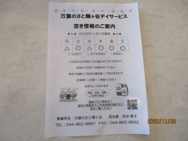 こんにちは!万葉のさと梶ヶ谷・デイサービスです(*^^*)