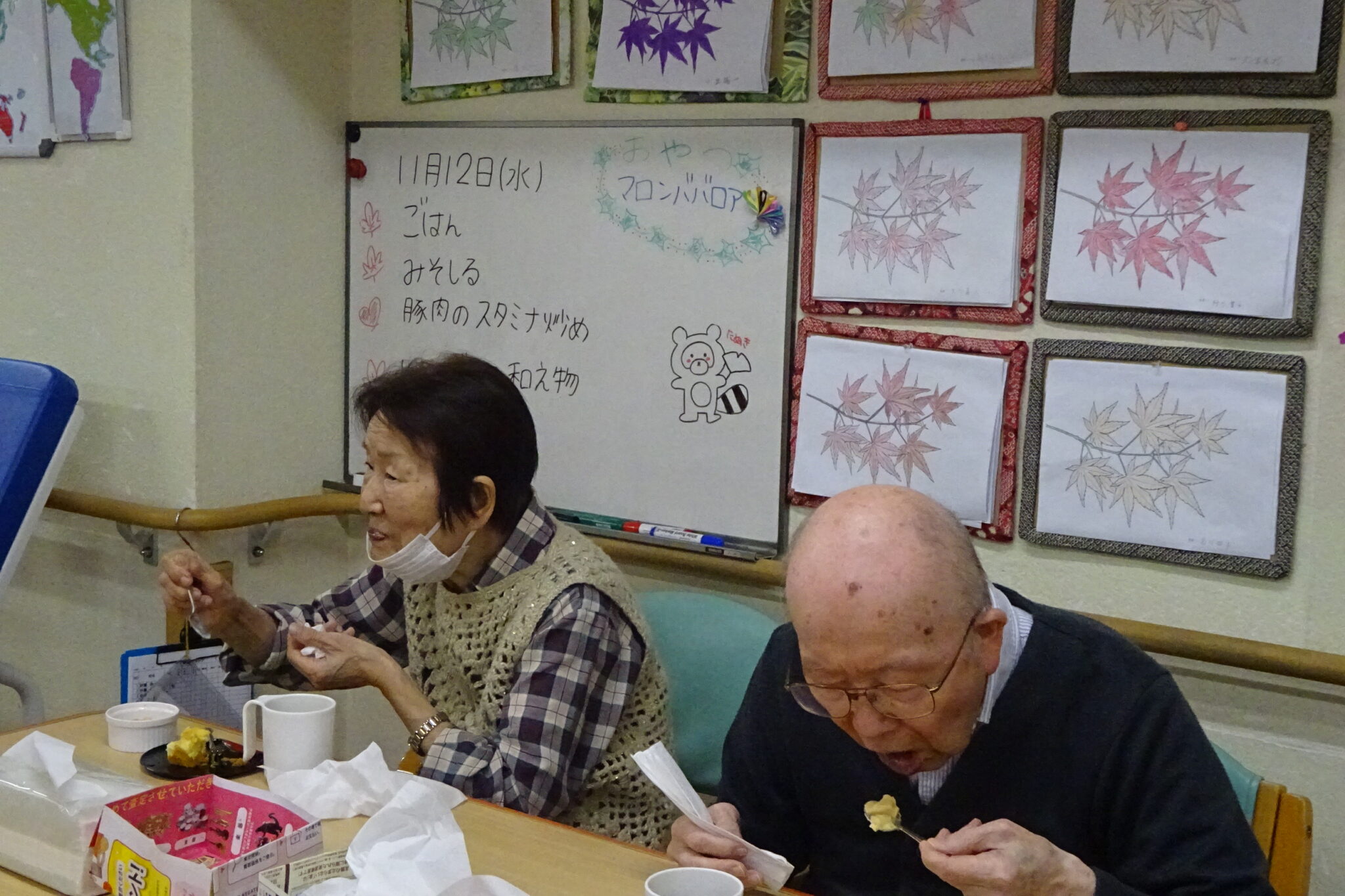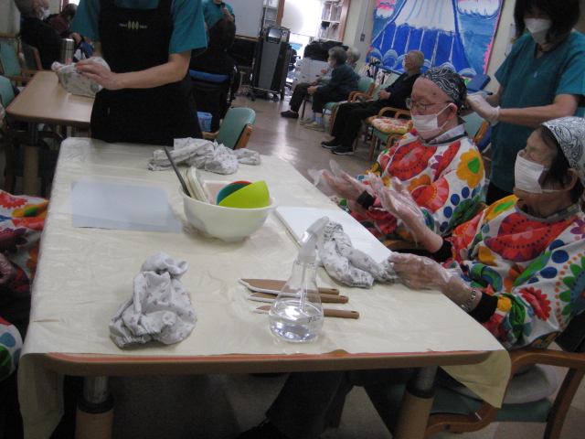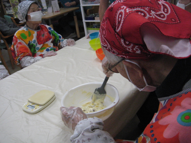 ★お菓子レク継続中!!★☆ 公開済み: 2025年11月12日更新: 2025年11月12日作成者: 万葉のさと大口カテゴリー: 大口 さつまいも蒸しパン...大好評につき本日もがんばりました!!いつもと変わらず、まずは万全の準備。これが大事。皆様のこころが一つになる時ですよ。なにしろ、これが一番大事なんですよ。包丁の扱い方。皆様へ、ゆっくり丁寧に何度も教えています。しっかり教われば、見事に成立します!!なかなかやりますね。がんばって男性のご利用者様も負けてません。とても器用に取り組み、お見事です。さぁ、、、、今度は計測です。150グラムに設定です。真剣な表情です。落ち着いていきましょう!!男性のご利用者様も計測です。真剣な表情は、見ていて気持ちいいですね。だんだんできあがる方向へ行くと、皆様のコミュニケーションが一段とレベルUPしますね。このかきまぜる作業は、なにかと体力勝負!!もう少しがんばってけっこう粘り強くかきましています!!本当のあと少しです。とにかく男性のご利用者様は力の入れ方が違いますね。さぁ峠は見えてきました!!!さぁ~このプラケースにいれたら終わりです!!この達成感がいいんですよ。おやつの時間にあわせて、皆様が、がんばった「さつまいも蒸しパン」間に合いました。おいしかったと大好評でした。本当にお疲れ様でした。ありがとうございました。 関連記事 ・・★★100才おめでとうございます!!★★・・ 100才 素晴らしい笑顔ですね。本当に気持ち良い拍手が延々と続きました。なかなか100才は大きい壁ですけど、これこそ最大の目標ですね。コロナを吹き飛ばしてオリンピックで盛り上がりましょう!!s最後は素晴らしいお礼の挨拶し…続きを読む 公開済み: 2021年7月5日更新: 2021年7月5日作成者: 万葉のさと大口カテゴリー: 大口 withコロナ大口 七夕かざり!! 何とか間に合いましたぁ!!七夕かざりました。今回はコロナ関連多いですね。まずは短冊に何の願い事を書くかですよね・・・・何となくできてきました。今サインを書いていますよ。短冊に紐を通しました。そろそろですね。完…続きを読む 公開済み: 2020年6月29日更新: 2020年6月29日作成者: 万葉のさと大口カテゴリー: 大口 ★蒸しようかん■PART2■ 公開済み: 2025年10月18日更新: 2025年10月18日作成者: 万葉のさと大口カテゴリー: 大口