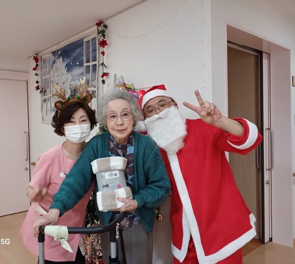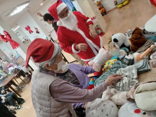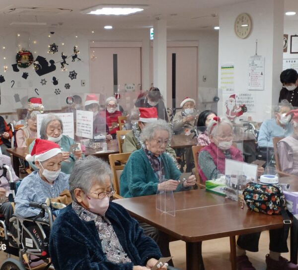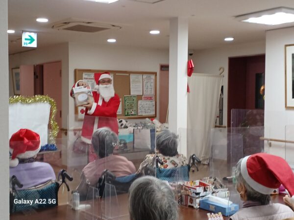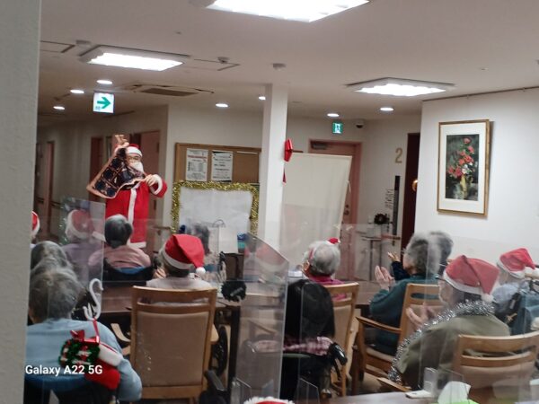 サンタさん(もしかして施設長⁉)のマジックに始まり、ビンゴの商品説明、