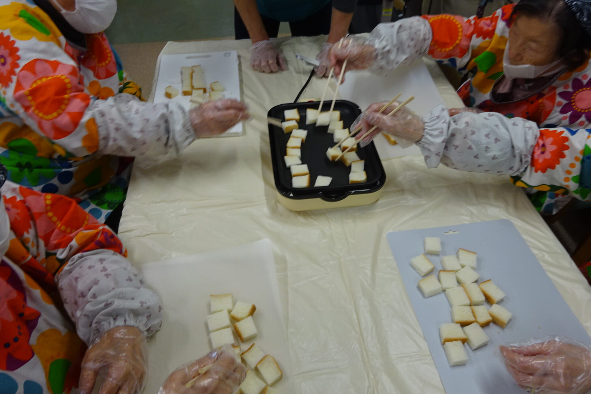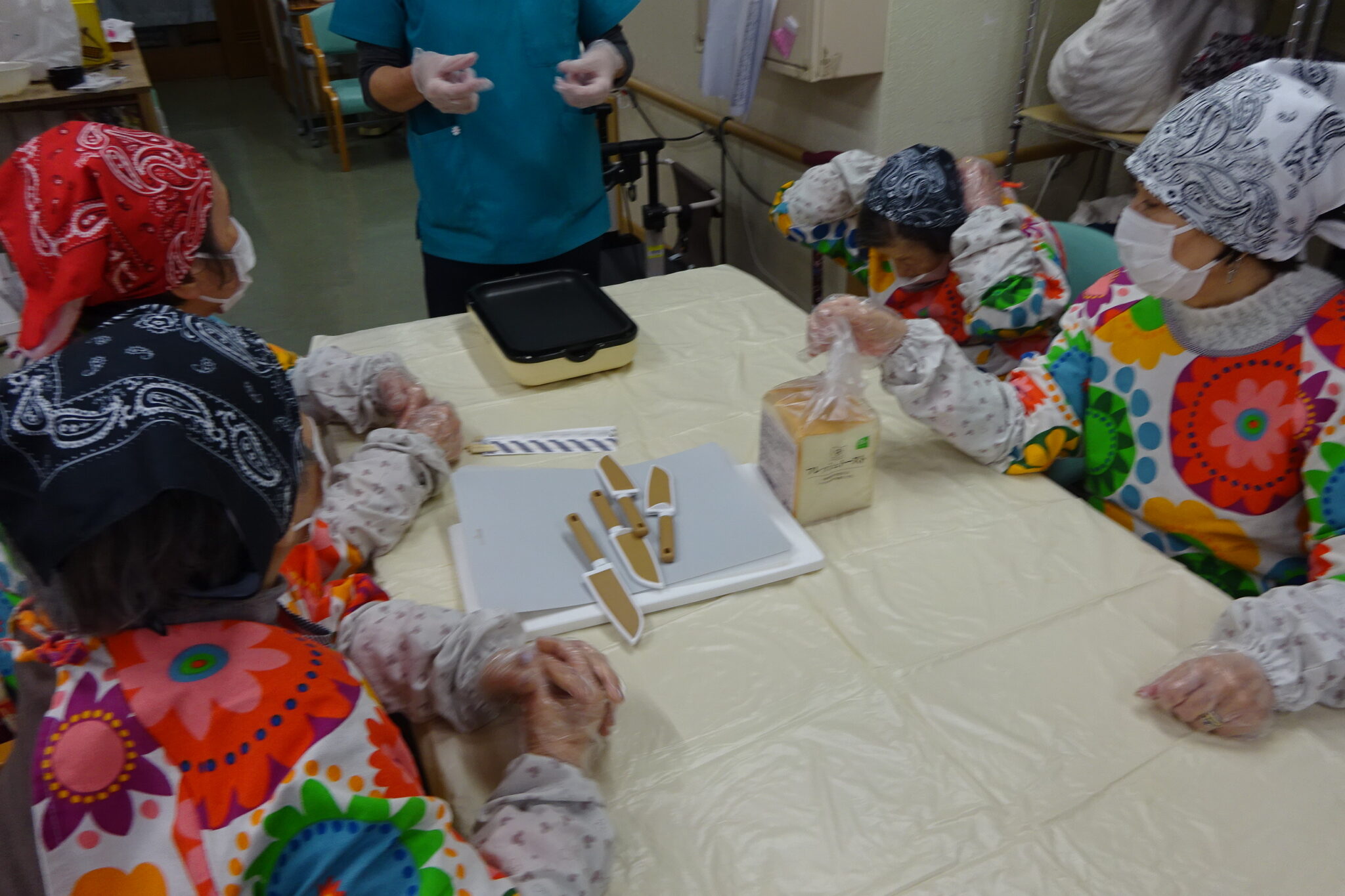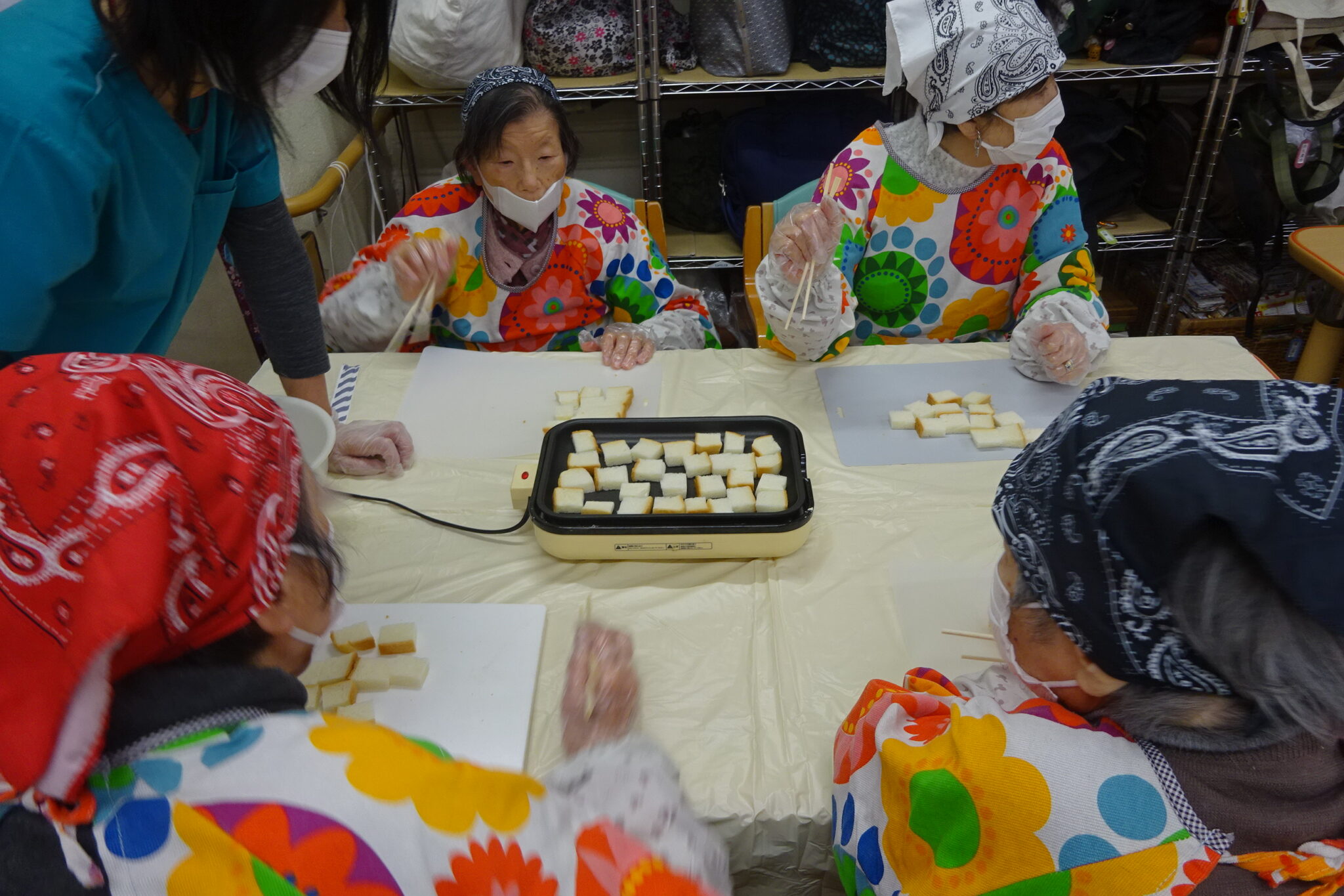 新春!!1月はチョコラスクから 公開済み: 2026年1月31日更新: 2026年1月31日作成者: 万葉のさと大口カテゴリー: 大口 ご挨拶遅くなりまして失礼致しました。 あっと言う間の新年の1月は通りすぎていきました。本格的な寒さで皆様、体の準備は 大丈夫ですか。新春こそお菓子レクはチョコレートとの事でチョコラスクでスタートです!!さぁ~いつも様にまずは、手順の説明から。これは大事ですね。真剣に耳をかたむけていますよ。まずはラスクを小さくカットですね。真ん中のプレートが大活躍します。食パンをカットした、たくさんのラスクをプレートでスタートオン!! 楽しみです。イイ感じにこげてきましたね。......これがいいんですよ。なかなか皆様上手ですね。 このあたりから、出来上がり感のイメージつかんできましたね。顔の表情見て納得です!!実に箸の使い方がお見事です。これだけ作れば、施設のご利用者様 全員分に余裕でまわるでしょう。皆様の大きい優しさに感謝です。そろそろ完成ですね。あとはチョコレートクリームをブレンドするだけです。ついに完成!!頑張りましたね。試食させて頂きました。何とも香ばしく、まろやかな甘みは新春のお菓子にぴったりです。本当に美味しかったです。皆様からも美味しいと大好評でした。新年1月は本日で幕を下ろします。お疲れ様でした 関連記事 ■祝・敬老会2021 ❕海釣りゲーム開催記念祭■ さぁ 海釣りゲームいきましょう!!敬老の日週間キャンペーン実施中 釣りましたぁ !!おめでとうございます!なかなか釣れないんですよ 集中力です。今度は今年100才になる男性ご利用者様です!!釣れますかな??焦ると落とし…続きを読む 公開済み: 2021年9月23日更新: 2021年9月23日作成者: 万葉のさと大口カテゴリー: 大口 3月 お菓子つくり①大福 3月からのお菓子つくり はじめました。皆様に大変、好評が良いため和菓子『大福』つくりを皆様に参加して頂きました。丁度よい甘さで、食べやすく、とてもおいしかったです。 公開済み: 2025年3月20日更新: 2025年3月20日作成者: 万葉のさと大口カテゴリー: 大口 打ち上げ花火大壁画 完成しました!! 花火大会の特大の壁画いかがでしょうか。ご利用者様、スタッフ 関係者の皆様に猛暑を乗り越えてリフレッシュしていただこうと実は施設長の私が一人で作成しました。時間と予算はかかり苦労しましたが、予想以上の大拍手と…続きを読む 公開済み: 2018年8月4日更新: 2018年8月4日作成者: 万葉のさと大口カテゴリー: 大口
