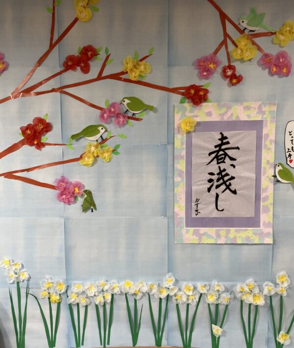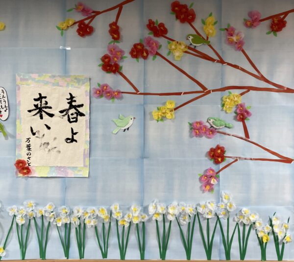 2月の壁面製作 公開済み: 2026年2月9日更新: 2026年2月4日作成者: 万葉のさと溝の口カテゴリー: 溝の口 今回は「梅」「メジロ」「鶯」「水仙」を飾っています!早く暖かくなって欲しいもんですね! 関連記事 敬老祭 今回のイベントポスターもご利用者の皆様からとても評判良く、イイ感じに仕上がりました(笑)!!!(*顔のみ全部スタッフです。) 今年の敬老祭は、日頃の感謝の気持ちと敬老のお祝いの気持ちも込めて、男性職員でよさこい…続きを読む 公開済み: 2023年10月16日更新: 2023年10月7日作成者: 万葉のさと溝の口カテゴリー: 溝の口 日常風景~麻雀編~ 万葉のさと溝の口ではレクリエーション内で 連日!!! “健康マージャン”を実施しております!最大“2卓”ご用意できます!!!電動麻雀卓のご用意があるので、お身体が不自由な方でも安心してご参加いただけま…続きを読む 公開済み: 2025年5月26日更新: 2025年5月20日作成者: 万葉のさと溝の口カテゴリー: 溝の口 壁面製作~クリスマスツリー~ ジャ~~~ン!!!煌びやかで色とりどりのクリスマスツリーが完成しました!!!! ただぁ!!!! ご利用者の皆様の制作風景の写真を…続きを読む 公開済み: 2024年12月16日更新: 2024年12月26日作成者: 万葉のさと溝の口カテゴリー: 溝の口
