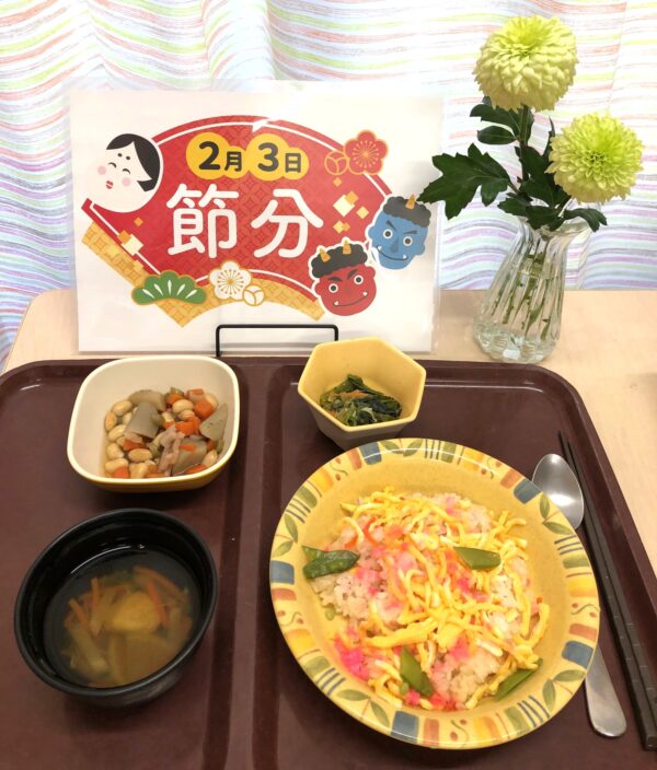目にも鮮やかな「節分ちらし寿司」❣️春の気分を味わっていただきました🎵