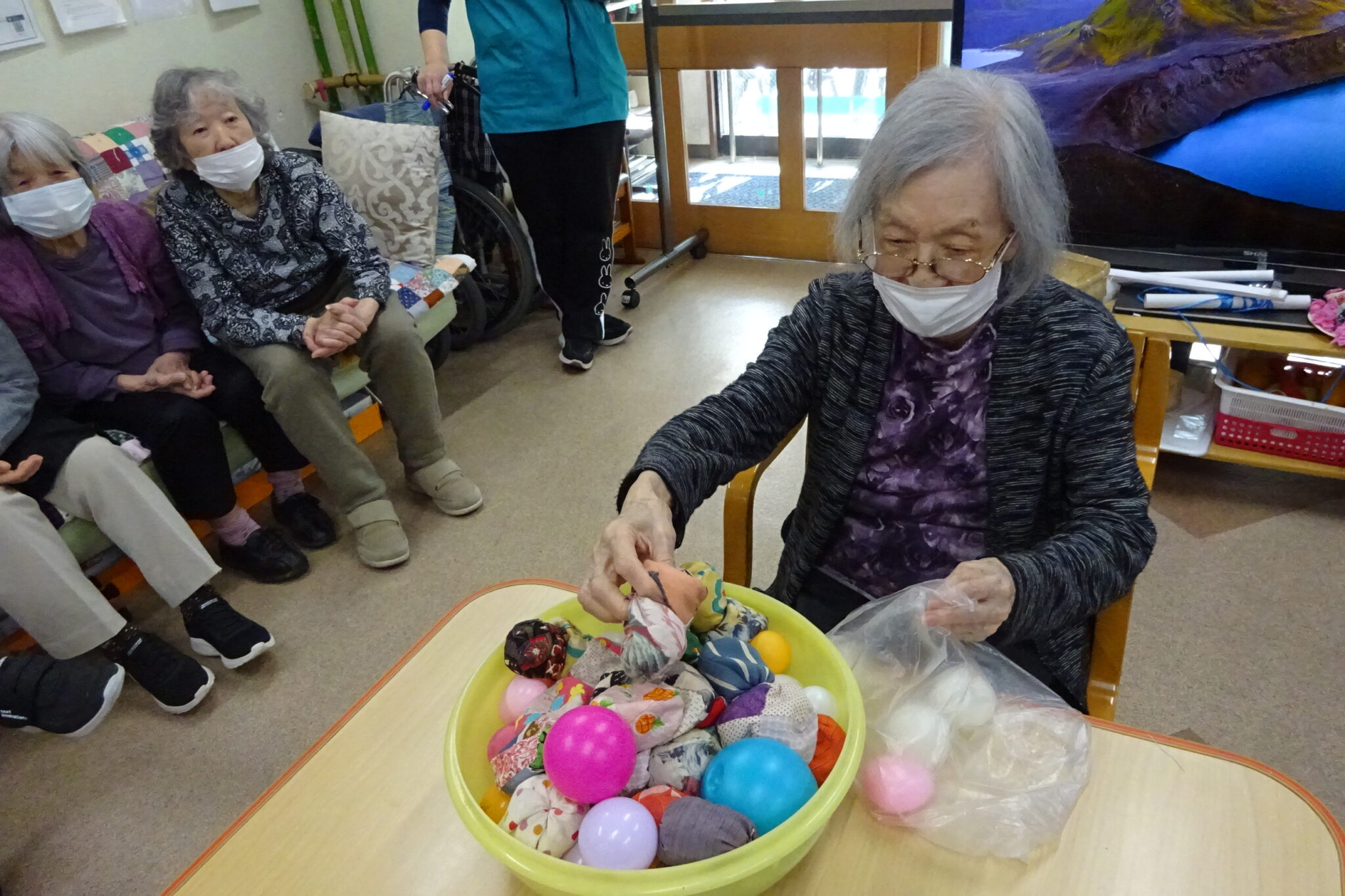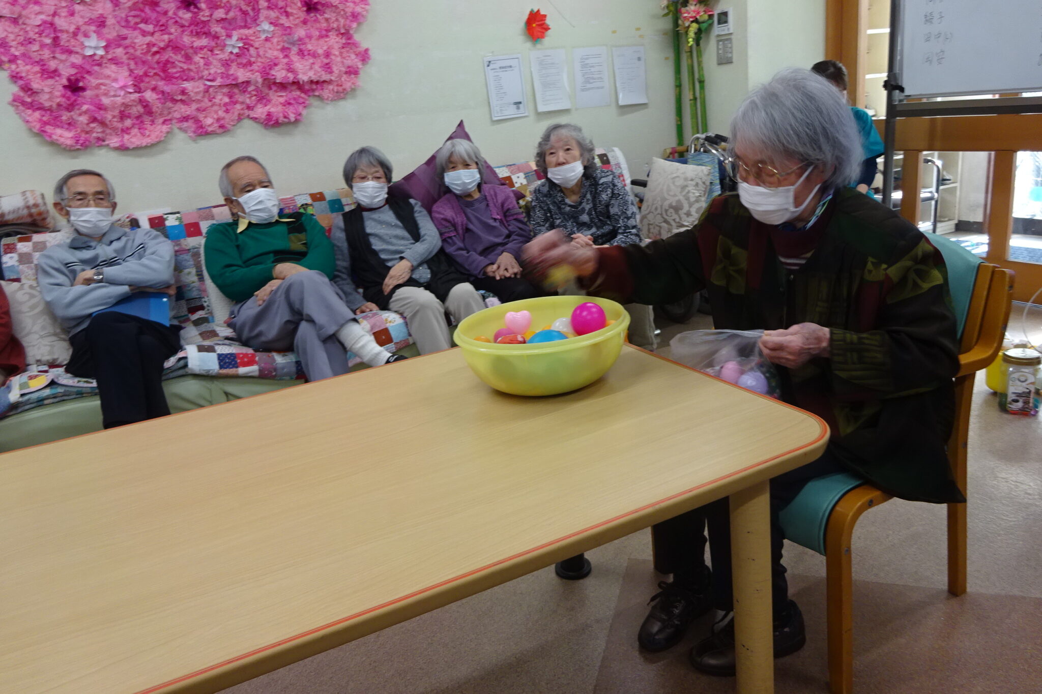 ★3月のようすです。☆ 公開済み: 2026年3月14日更新: 2026年3月14日作成者: 万葉のさと大口カテゴリー: 大口 春になりましたから記念写真を1枚!!みなさま とってもいい表情ですよ。甘酒です。もちろんアルコールはありません。いい感じに仕上がりましたね。完成!!さぁ 皆様へ提供開始!!この安心感と満足感の表情...。素晴らしいです。とっても美味しいとの事でした。 納得です。ゲームは見ての通リ、時間制限内にどれだけボールを袋に入れるかです。 シンプルで実に分かりやすいため、皆様がんばってましたよ。その1枚をズームイン!!最高齢でありながら、がんばってますね。やっぱりシンプルこそベスト。かなりの高得点あげました。2位でした。おめでとうございます。 関連記事 夏ゲームはじめました もうすっかり夏ですね。じめじめした日も続きますが、めげずにがんばりましょう!!★☆『エッグ(たまご)でポン!!』ゲーム★☆こちらは小さいボールを投げて生卵のプラケースに入れるゲームです。まわりをパーテンションでガードしま…続きを読む 公開済み: 2024年7月11日更新: 2024年7月11日作成者: 万葉のさと大口カテゴリー: 大口 8月の猛暑 コロナに勝つ!! どうでしたか?7月の七夕の短冊を8月は風鈴に劇的に変えましたぁ・・・本当に記録的な猛暑とコロナの勢いと最後は首相辞任 参りました。そこで、危機的状況を乗り越えましょう!!と風鈴で再び猛暑とコロナに…続きを読む 公開済み: 2020年8月31日更新: 2020年8月31日作成者: 万葉のさと大口カテゴリー: 大口 お待たせいたしました。七夕から 猛暑が続きますね。皆様 お体大丈夫でしょうか? ブログ再開致します。令和最初の7月の七夕の飾りは、本格的に大きい七夕祭りで使われている間竹で、ご利用者様の願い事の短冊をの飾りました。願い事はやはり健康でした。熱中症対策…続きを読む 公開済み: 2019年8月3日更新: 2019年8月3日作成者: 万葉のさと大口カテゴリー: 大口