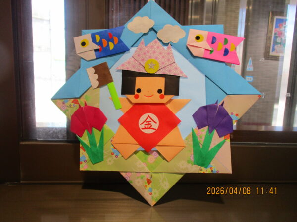 来月の端午の節句にちなんだこいのぼりと金太郎が、素敵に出来上がりました。指先を器用に使い脳トレですね!