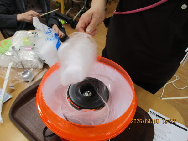 本日は綿あめを作って皆さまに食べてもらいました!!作るのがなかなか大変そうでした(; ・`д・´)