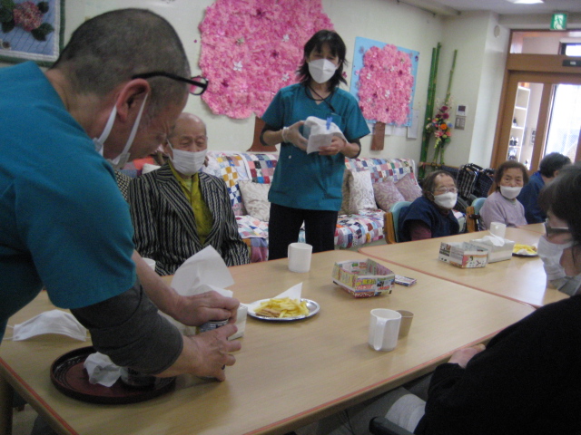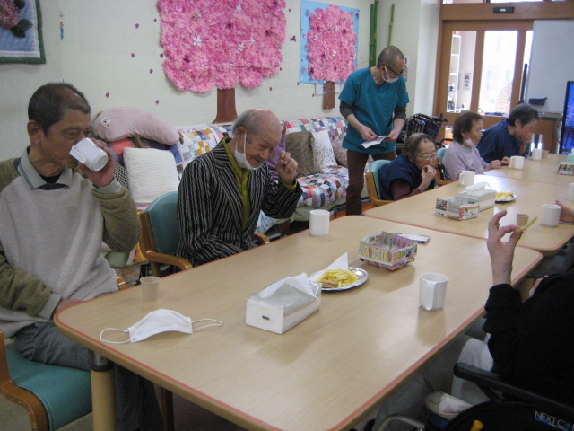 大口お花見会です。 公開済み: 2026年4月30日更新: 2026年4月30日作成者: 万葉のさと大口カテゴリー: 大口 月末は感謝を込めて、施設の中でお花見の会やりました。 なんとか、終わりましたね激動の4月 皆様本当にお疲れ様でした。ノンアルビールで乾杯!! まずは甘酒でしょう。これはアルコールないです。安心してください。とにかく美味しいの一言です。 大好評!!この雰囲気がいいんですよ……。これがお花見会です。 納得しました。後ろの桜はスタッフが1週間がかりで仕上げたものです。いいですよね。素晴らしい…‼これは5月に向けてスタッフが作成したアジサイです。参りました。さすがですね。玄関入口ですから、通行人の方で楽しみに見ている人もいますよ。 関連記事 ■来年もよろしくお願い申し上げます。■ 2020年 あっという間の1年間でしたね。疲れましたの一言です。2021年こそ『コロナ離脱‼』で、コロナストレス乗り越えましょう‼ よい新年を迎えるようにと、スタッフ+ご利用者様から願掛けしてもら…続きを読む 公開済み: 2020年12月30日更新: 2020年12月30日作成者: 万葉のさと大口カテゴリー: 大口 梅雨だから、ツーゲームしました。 この時期は蒸し暑く、高湿度でなんか、気持ちがスッキリしませんね。ここまできましたら2種類のゲームで盛り上げていきました。夢中になってがんばると、なぜか他の事忘れて、スッキリしますよね。今回は「キャッチ ザ キ…続きを読む 公開済み: 2024年6月15日更新: 2024年6月15日作成者: 万葉のさと大口カテゴリー: 大口 かわいい《すずカステラ》つくりました。 7月は猛暑や大雨で、気持ちも世の中も大変ですね。こんな時こそマイペースで行きましょう!!本日のお菓子レクはすずカステラです。試食して、納得しました。何個でも食べたくなりますよ。美味しかったです。それにしても皆様の表情が何…続きを読む 公開済み: 2025年7月17日更新: 2025年7月17日作成者: 万葉のさと大口カテゴリー: 大口